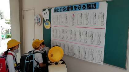 これまでにも紹介してきましたが、本校は昨年度から日本学校歯科医会から大阪市小学校として「生きる力をはぐくむ歯・口の健康推進事業」を委嘱されています。現状では、なかなか児童の活動が取りにくいのですが、今年も「歯と口の健康を守る標語づくり」に取り組むことにしました。今年は、学級ごとに保健室前の掲示板に掲示し紹介する予定です。
