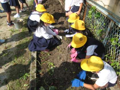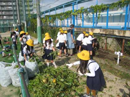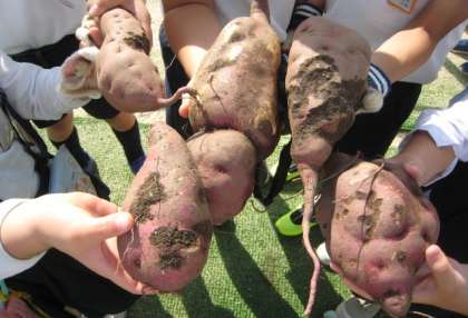 2年生が生活科の学習で育ててきた「サツマイモ」の収穫をしました。丁寧に土を掘りながら大きな芋を掘り起こしていました。サツマイモのつるも協力してきれいに片づけました。早速、教室では図工の学習に結び付け、サツマイモの絵を描くことにしました