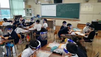 歯と口の健康を守る授業で、食事中しっかりかんで食べるためにどのようなことに気をつければよいか「作戦」と題して考えました。