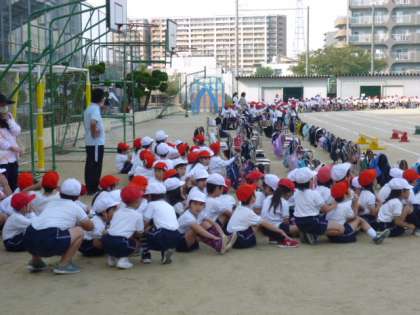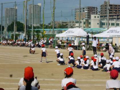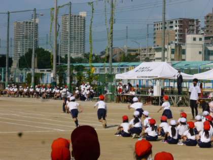 2番目は、1年生。鯰江東小学校に入学してから初めての運動会(今年度は、スポーツ大会)。全学年の前でかけっこをすることは初めてなので少し緊張はしていました。ただ、全員が最後まで一生けん命に取り組んでいました。
