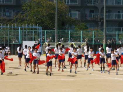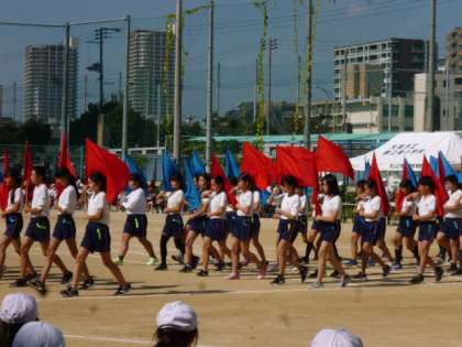 最後は6年生。団体演技「耀(かがやき)」は、本当に圧巻でした。フラッグの先や指先まで意識が行き届いていることが、見ていてはっきりとわかりました。そして「一糸乱れぬ」とは本当にこのことを言うのだろうなと感じました。まっすぐに前だけを見据えた視線の先には、素晴らしい将来が待っていると思います。