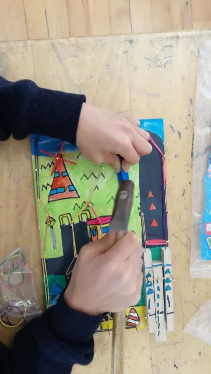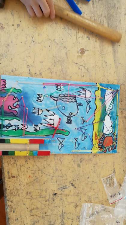 木を材料に釘や金づちの使い方を学習していました。楽しい作品に仕上がっていました。