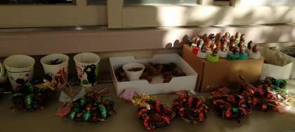 1年生の靴箱の上に生活科で作った置物やリースが飾られていました。リースは1学期から育てていた朝顔のつるで作ったそうです。とてもすてきな作品に仕上がっていました。