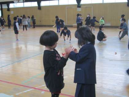 入学説明会のあいだに、1年生と来年度入学予定の子どもたちとでふれあい遊び大会が行われました。
