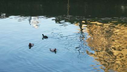 昨日の雨のせいでしょうか、餌を求めてたくさんのヒドリガモとオオバンが学校の前まで泳いできていました。オオバンはくちばしが白で体は真っ黒です。鶴見緑地にもたくさんいるそうです。