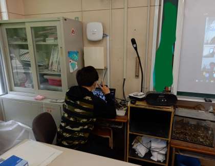 6年生はチームズで健康観察などをしました。国語の教科書を読み合わせる活動もしていました。