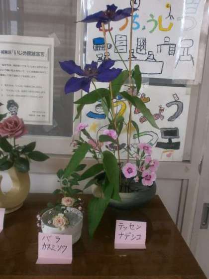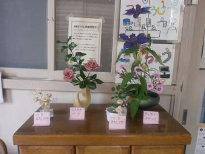 校長室の前に地域の方がお花が生けてくださいます。見る人の心を穏やかにし、校内を華やかにしてくれます。花に興味を示す子どもの姿も見られます。
