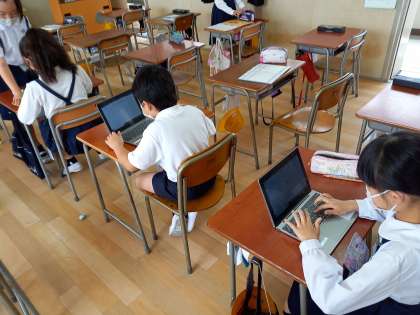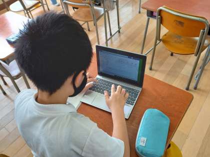 休憩時間に教室を回ると、タイピングの練習をしている子どもたちがいました。本校では3年生以上の学年には、タイピング練習サイトをチームズに投稿して練習をするように勧めています。毎日、タイピングの宿題を出している学年もありブラインドタッチができるようなってきた子どももいます。