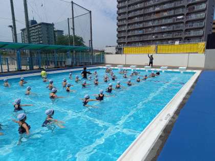 今日からプールが始まりました。いつもなら、子どもたちの歓声があがるのですが、静かなプールの時間でした。