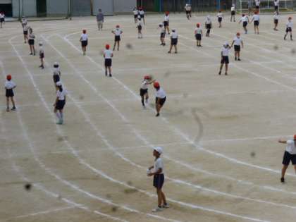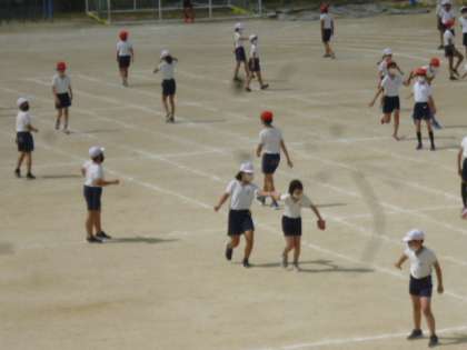 今日は、5年生のリレー練習です。リレーを行うグループに分かれて、バトンパスをおこなう際の「掛け声」や「リード」を確かめ合いながら、練習に取り組んでいました。本番が楽しみです。