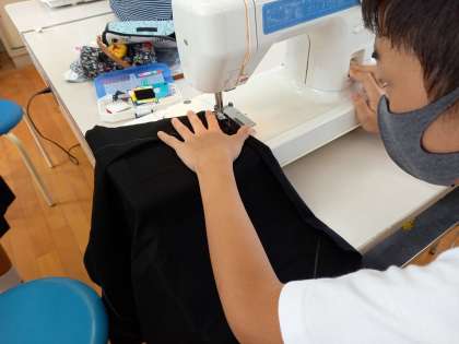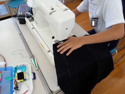 ミシンの使い方の学習も含め、6年生がエプロンづくりをしています。ミシンの梁にミシン糸を通すのも至難の業です。