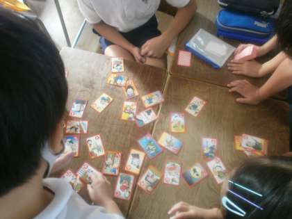 今日も子どもたちの元気な声が響いています。運営委員会の児童は、積極的にあいさつ運動に取り組んでいます。集会活動では、運動場で「ボールリレー」をおこないました。ある教室では、かるたを楽しんでました。リーダーを中心に低学年への優しい行動が見られます。