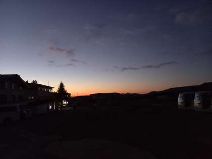 まもなく起床です。今日の天気も心配なさそうです。きれいな朝焼けです。