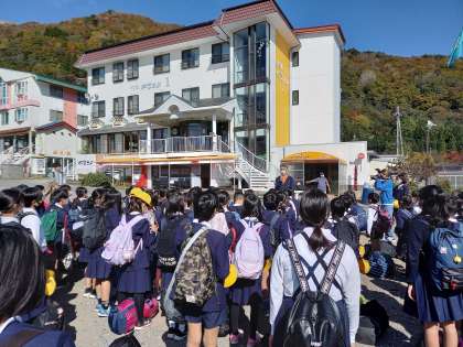 閉舎式の様子です。宿舎の方とお別れの挨拶をしました。