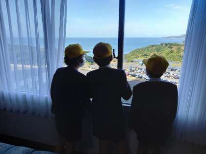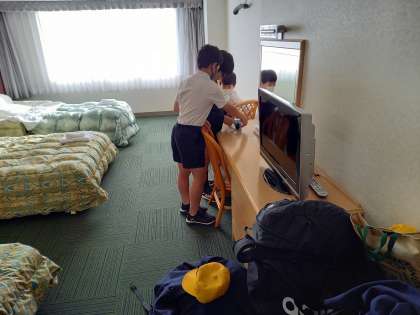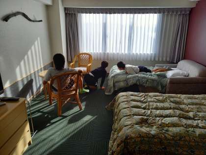 午前の活動に入る前に、部屋の片付けをしています。服装も整え、ちょっとゆったりした時間が流れています。