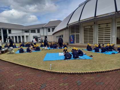 早いお昼ごはんのお弁当をいただいた後に、和歌山県での修学旅行と言うことで、木に関係する体験活動に取り組みます。
