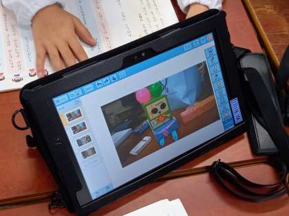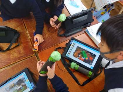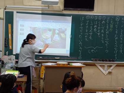今日は国語の学習で「話す」活動の学習をしていました。タブレット端末で撮影した写真を紹介したり、聞き手は質問したりしながら、楽しく会話をつないでいました。
