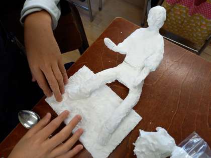 図画工作で粘土を使って人の動きを表す学習をしていました。今年はオリンピックがあったので、いろんな競技の特徴ある動きを表現していました。