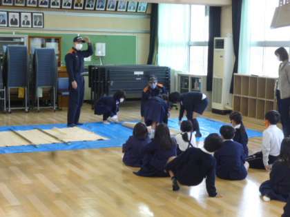 本日は、土曜授業で防災に関する学習を全学年で行いました。日常の学校生活では、体験できないことや自分の命を守るためにはどうすればよいか等を考える機会になりました。そして何より、この体験活動は地域・保護者・消防・区役所さんのご協力により実現することができました。本当にありがとうございました。