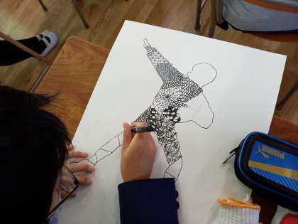 図画工作の表現の学習で動きのある人物を表現する学習をしていました。シャドーアートです。