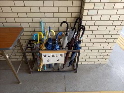本校では急な雨が降ったときなど、貸し出し用の傘を玄関に用意しています。児童は自由に借りて帰っていいのです。最近は、傘を借りて帰るのはいいのですが、返してもらってないようで、50本ぐらいあった傘がずいぶん少なくなりました。みんなが使う傘です。借りた傘が家にあったら、持ってきてほしいと思っています。