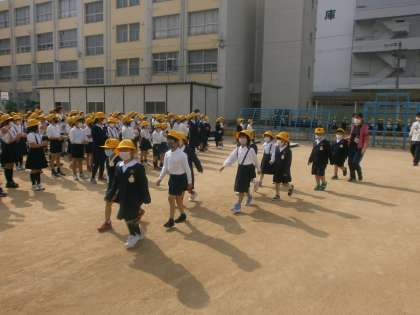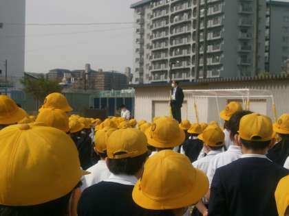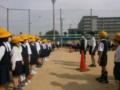 その後、1年生も所定の位置に立ち、児童朝会が行われました。暑い中でしたが、お話をしっかり聞くことができました。