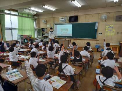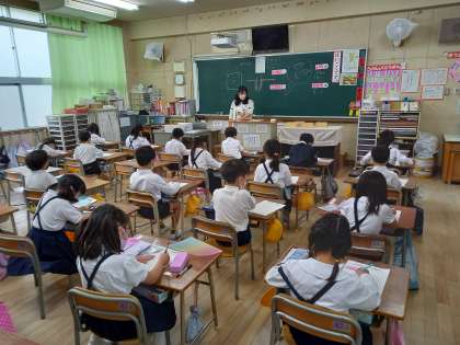 生活科と算数の学習です。先生のお話をよく聞いています。