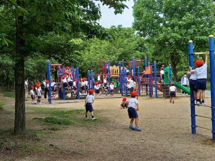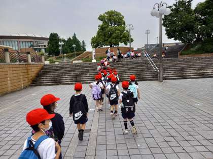 今日は1年生が鶴見緑地に出かけました。学校から学級の友だちと乗る電車。お話をすることなく乗れていました。鶴見緑地では、こどもの森で遊具で遊んだり、大芝生で学級で遊んだりしました。美味しいお弁当をいただいたあと、風車を背景に記念写真を撮りました。楽しく過ごせた1日でした。