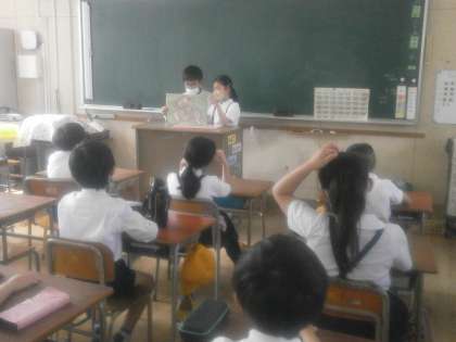 今週は読書週間です。4〜6年生は朝読書、1〜3年生は図書委員会が紙しばいの読み聞かせをしています。有名な昔話から普段読まないようなお話まで様々な作品を読んでいます。子どもたちは集中してお話を楽しんでいます。読書週間をきっかけにたくさんの本に親しんでほしいものです。