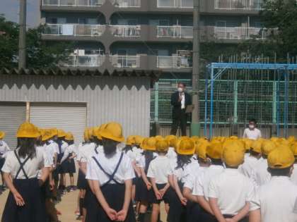 児童朝会の姿勢をほめられた6年生は、今週の木・金で修学旅行へ行ってきます。この2日間は、登校班の班長のかわりが5年生や4年生になります。よろしくお願いします。運営委員会からは、来週のあいさつ週間についてお知らせがありました。普段から元気いっぱいの声で挨拶する児童もそうでない児童も、意識して取り組んでほしいと思います。気持ちの良い挨拶ができる児童が増えることを願います。