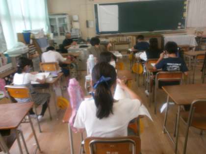 本日から、学習会が始まりました。クラスメイトに囲まれ、ほどよい緊張感の中で真剣に取り組んでいます。わからない箇所や間違いがないかを担任に聞きにいく様子も見られました。丁寧な字で仕上げようとする姿も見られました。有意義な時間になるよう支援していきます。