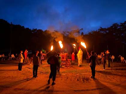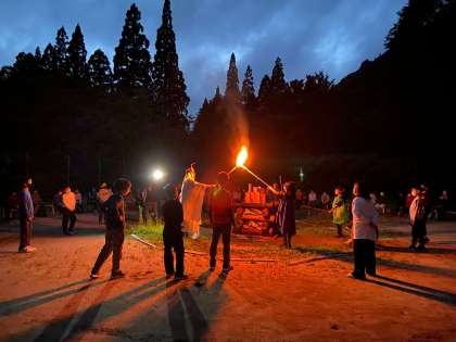 キャンプファイアは盛り上がっています。火の神様も降臨されました。