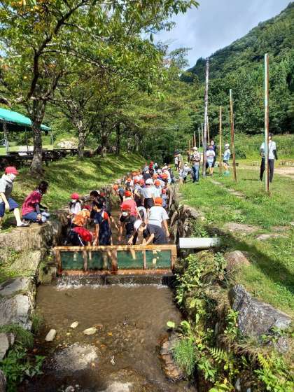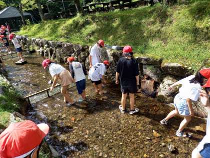 魚つかみが始まりました。川の水の冷たさに思わず声が上がります。一番最初に魚を捕まえた写真ものせます。