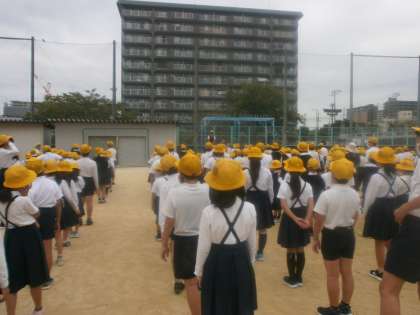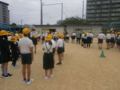 2学期も集会委員会が、たてわり班でなかよく楽しく活動できるゲームを企画し進めています。今日のゲームは、班で円になってしりとりをしながらボールを回すゲームでした。しりとりでつまっている低学年に高学年が優しく教えている姿が見られました。全校オリエンテーリングに向けて班の結束が高まるとよいなと思います。