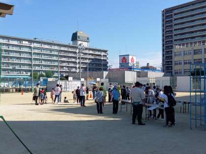 今日は鯰江東フェスティバル ウォークラリーが開催されています。町会ごとに城北川遊歩道をクイズをときながらゴールを目指します。