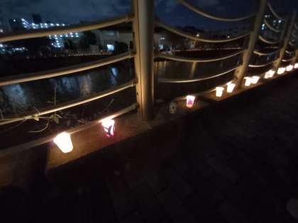 今夜は城北川キャンドルナイトが中菫橋から北側で催されています。本校も今年は6年生の作品が展示されています。ろうそくの灯りでともされる作品がとてもきれいです。