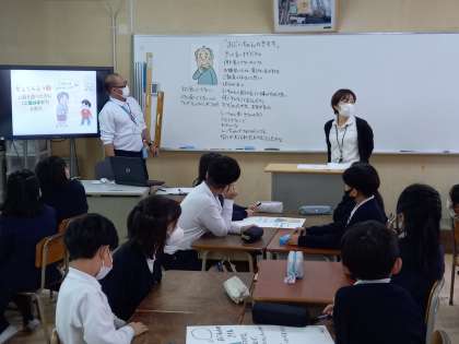 2年間できていなかったのですが、本校では城東区地域包括センターの方から4年生が認知症について学習します。自分達がどのように考え、接していけばよいかを考えました。