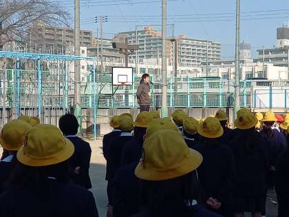 今週は久しぶりに運動場で実施しました。はじめに、歯と口の健康にかかわる図画作品の表彰をしました。生活指導の先生からは、携帯電話やスマートフォンの使い方について危険なことがあることから、使い方への注意がありました。