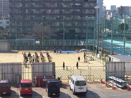 6年生が卒業式の練習を運動場でしていました。来週月曜日は鯰江小学校講堂を午後からお借りして、来週金曜日は本番の式場となる区民センターをお借りして練習をします。