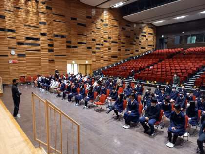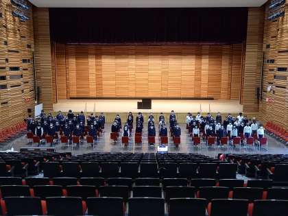 卒業式式場になる城東区民センターを借りて初めて練習をしました。調整することも多々ありましたが、6年生は立派な態度で練習することができました。