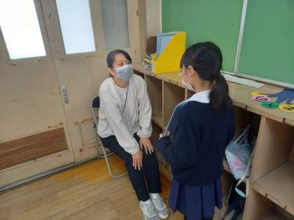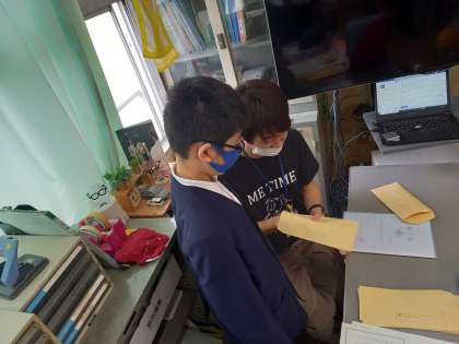 担任の先生から児童一人ずつに頑張ったことや取り組んでほしいことを話してから通知表を児童に渡していました。