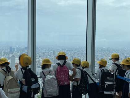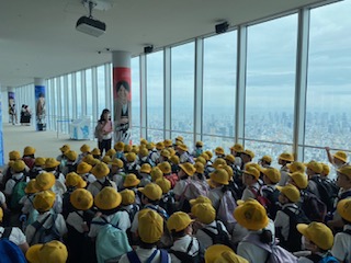 3年生はあべのハルカスに校外学習に行きました。地上288mの展望台から眺める景色に思わず歓声をあげていました。ハルカスでは、グループで大阪の町の様子をワークシートに書き込みました。