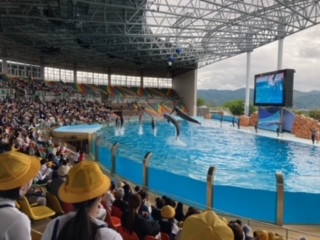 マリンライブではイルカたちのスーパージャンプに拍手がおきました。
