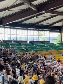 アニマルアクションでは頭上を飛んできたタカに歓声があがっていました。