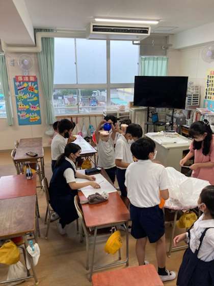 たてわり班で出し物を考えて実施するスクールフェスタに向けてどの班の子どもたちも準備を頑張っていました。