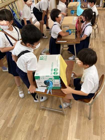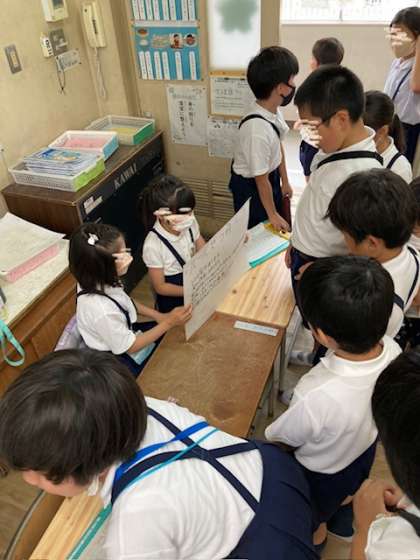 たてわり班で作ったお店を楽しくまわったり、お店番も協力して行う子どもたちです。