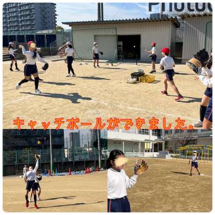 大谷選手から頂いたグローブを順番に使いキャッチボールをする6年生です。嬉しいそうにボールを投げる姿が見られました。