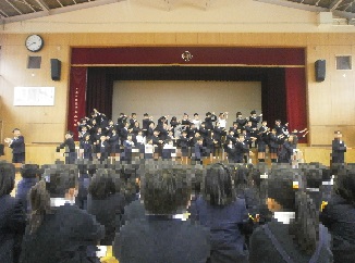 先月の落語の会で教えていただいた「じゅげむ」を群読しました。何度もじゅげむの長い名前が出てきたため、真似をする児童や笑っている児童もいました。最後は歌とダンスも披露して講堂が和やかな雰囲気に包まれていました。