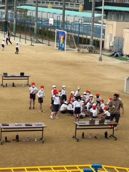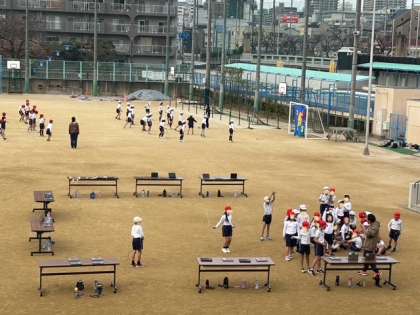2年生体育 なわたび タブレット端末を使った表現運動の様子