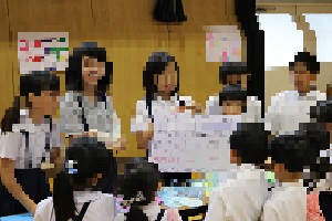 1・6年生の交流がありました。6年生が用意した遊びを、楽しそうに1年生が遊んでいました。持ち帰った景品を、1年生は教室で嬉しそうに見つめていました。